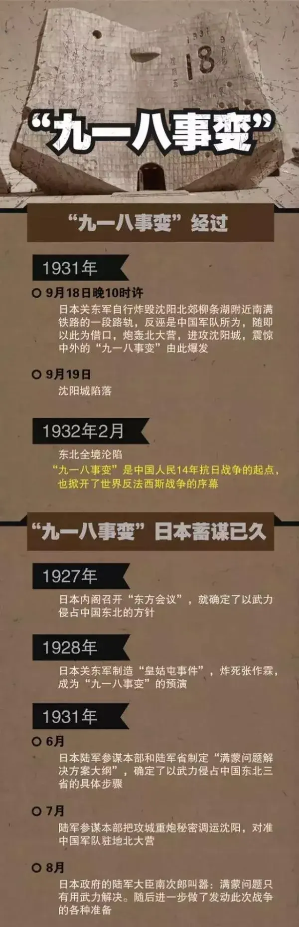 九一八事变,又称为“满洲事变”,发生在1931年的9月18日,是中国近代史上的一次重大历史事件,对于中国的历史、政治、文化等方面产生了深远的影响。是日本蓄谋已久的侵略阴谋。