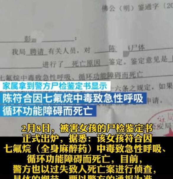 警方经调查发现,女孩的死因是七氟醚中毒引起的急性呼吸循环障碍。