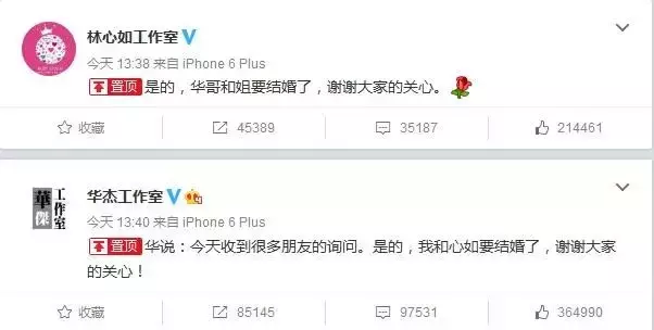 直到16年7月5号,霍建华的工作室发布了霍建华跟林心如要结婚的消息,