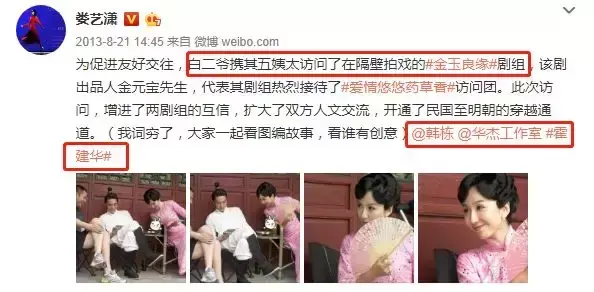 12年的时候,娄艺潇晒霍建华的阵地就从人人换到了微博。