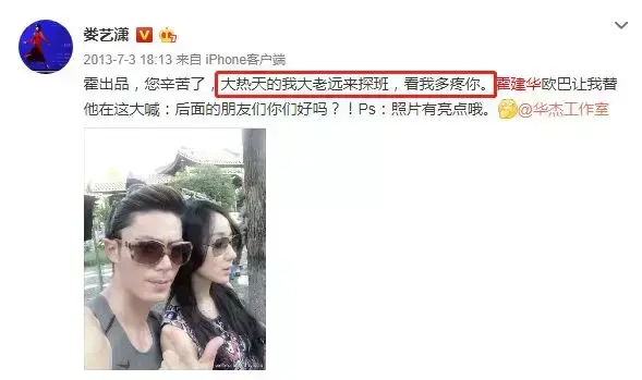 不仅仅如此,娄艺潇也会去探班霍建华,“大热天的我大老远来探班,看我多疼你”。