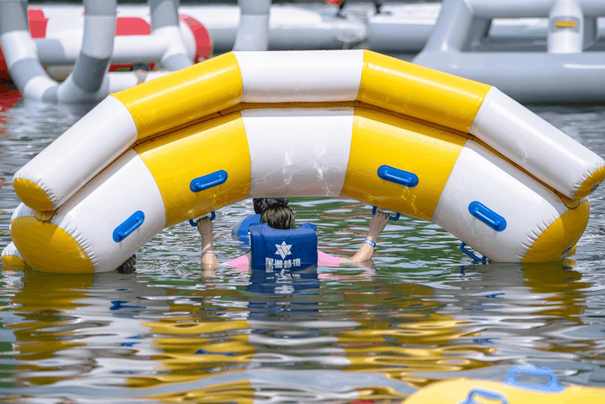 漂浮闯关平台,超解压的“水”与争锋地。夏日清凉,一定是汗流浃背之时,跳入水中最过瘾。在星潮,漂浮闯关平台,是水上竞技综艺《男孩女孩向前冲》同款打卡地。颇具挑战性的一个个通道障碍,让你有一种如履薄冰的感觉,同时,看着清澈的湖水,又有一种一往无前的斗志满满。水底设阻拦网,因而特别适合儿童体验。