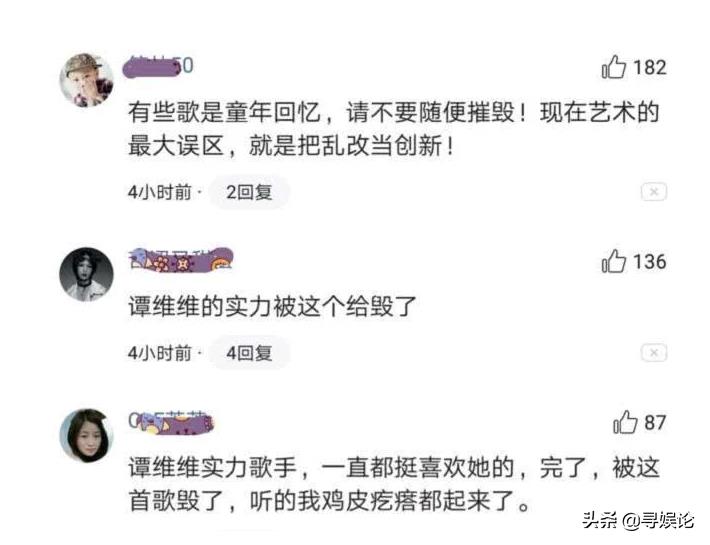 很多观众在听完之后觉得自己不知所措,完全能在她的歌声里迷路,毕竟这首歌太过经典,作为西游记的主题曲,大部分人都是听着这首歌度过漫长的寒暑假的,网友们表示先不说谭维维的唱功怎么样,这样改编一首老歌的意义到底在哪里?并不是说不知耻改编老歌,起码你得在原有的艺术造诣上改得更成功,能带给听众更多的享受,如果只是为了走捷径,那就不要轻易的去碰触已经在人们心里扎根的经典,不然就真的让人倒胃口。