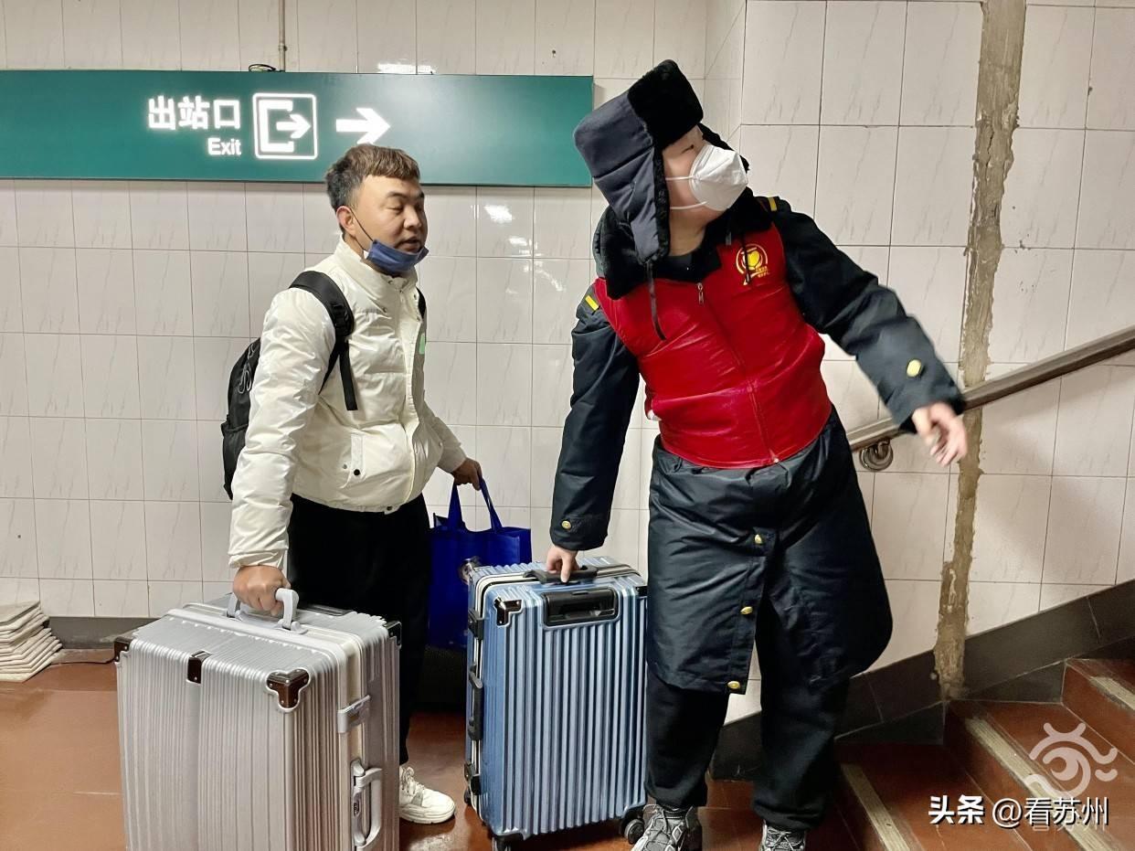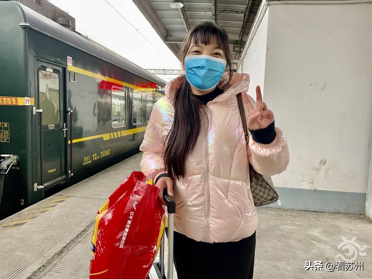 看苏州记者注意到,陈红霞的行李箱上还放着一大袋食品。“这次回来我还拿了不少的家乡特产,比如烧饼、鱼肉丸子,打算分给同事们尝尝。”