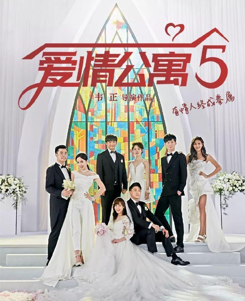 在海报中,爱情公寓成员们身穿着帅气的西装与华丽的婚纱,两两成对相当人甜蜜。