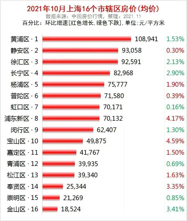 上海16区房价:黄埔区超10万元/㎡,浦东新区涨幅大,金山区垫底