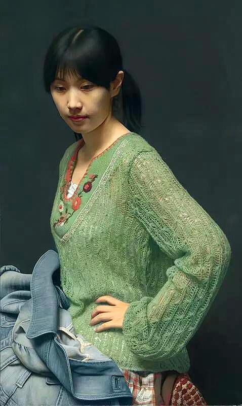 这张照片,大家第一眼肯定认为是一位穿着绿衣服的姑娘的照片,但是小编告诉大家,这不是一张照片,而是一幅油画。这是冷军老师的一幅超现实主义的油画作品,由于画的十分的逼真,让很多人都误认为是照片。