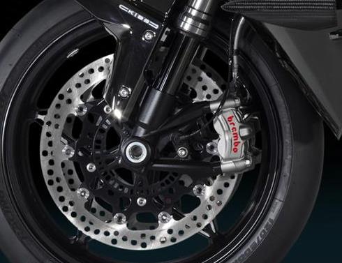 KYB品牌的可调倒立式前叉,搭配名厂Brembo的四活塞卡钳和通风刹车碟,看上去就很炫了。