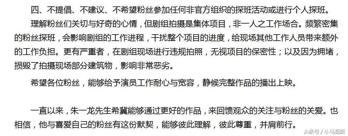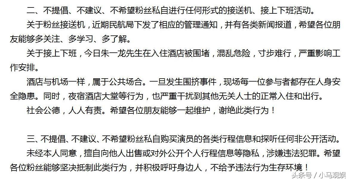 想对那些私生说,你们真的不是粉丝!曾经马儿还在文章底下看到有评论说这辈子能见到龙哥一面就好了,还有人盖楼说组团去看他吧。有点无语。真心喜欢就把钱花在正道上,去公开渠道去现场,拿着买来的行程去堵人家,拿着手机都怼到人家脸上去了猛拍,你摸着良心讲你真的是喜欢他吗?劝你善良!