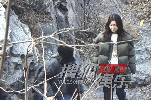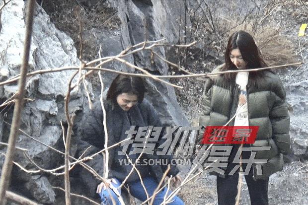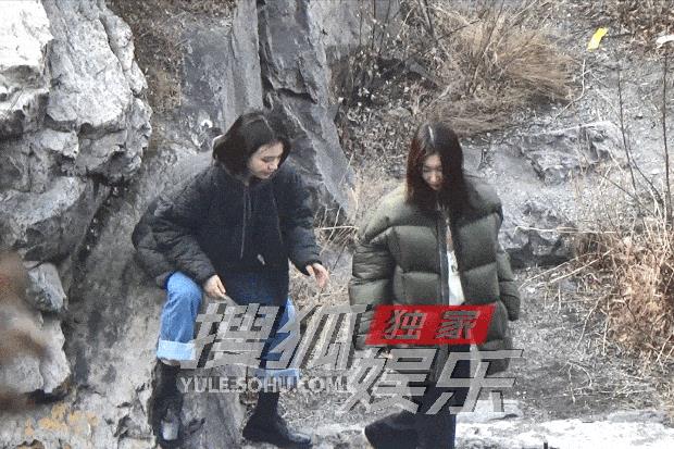 下台阶时周冬雨不时叮嘱马思纯小心。