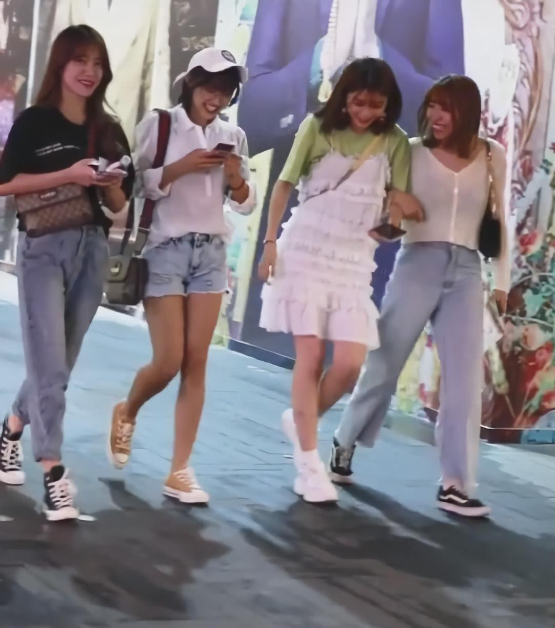 虽然身高矮了不少,腿也变短了,但是代古拉还是非常的开心,而且一点都不担心被别人拍到。脚踩一双橙色的帆布鞋,平时在视频中光鲜亮丽的她,如今看着就跟普通路人没有什么太大的差别。