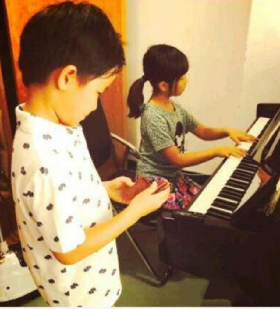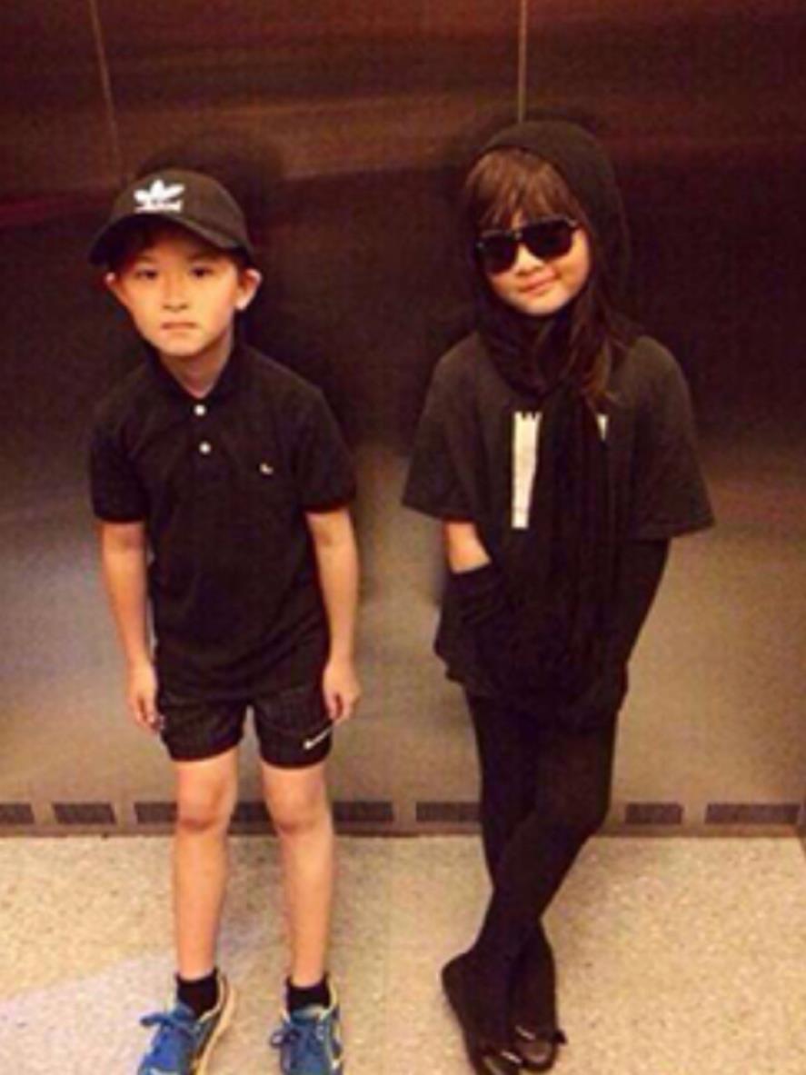 清一色的黑色装扮很有情侣范儿,虽然孩子们都还小,不过看上去很美好
