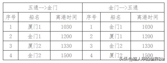 目前厦金客运航线船班为每天8班次(4进4出),具体船班时刻、船票价格如下: