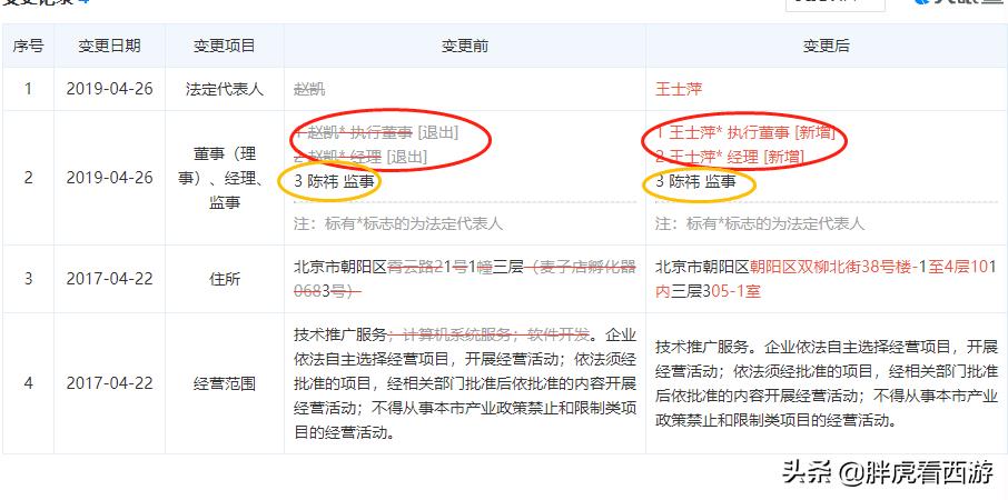 接任冥想的是一名叫做王士萍的人,身份不明;监事还是不变,依旧是陈祎。有法律专业的老哥可以留言给大家科普董事、监事的意义。