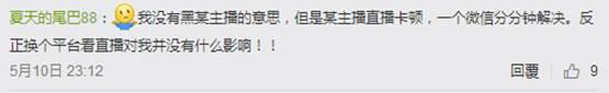 看了九九家粉丝留言,据小编推测,应该是九九在虎牙直播的时候一直遇到卡麦问题,而虎牙并没有给他及时解决,甚至没有想要帮他解决的态度。和别的主播相比较,区别对待的情况显而易见。