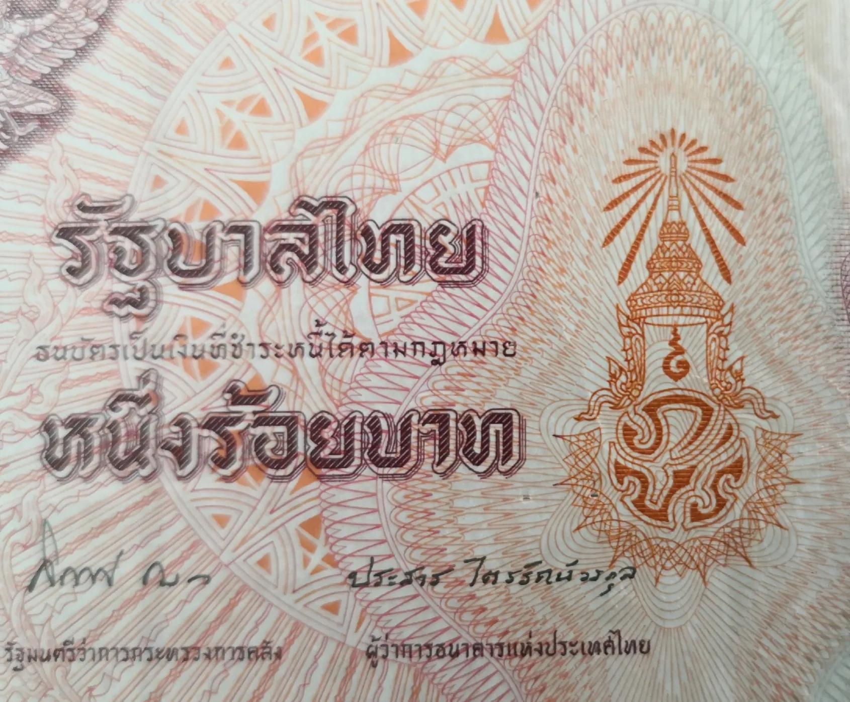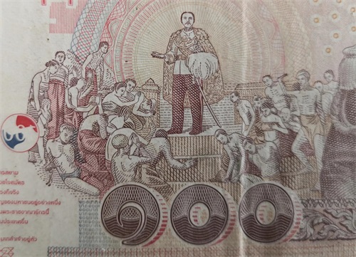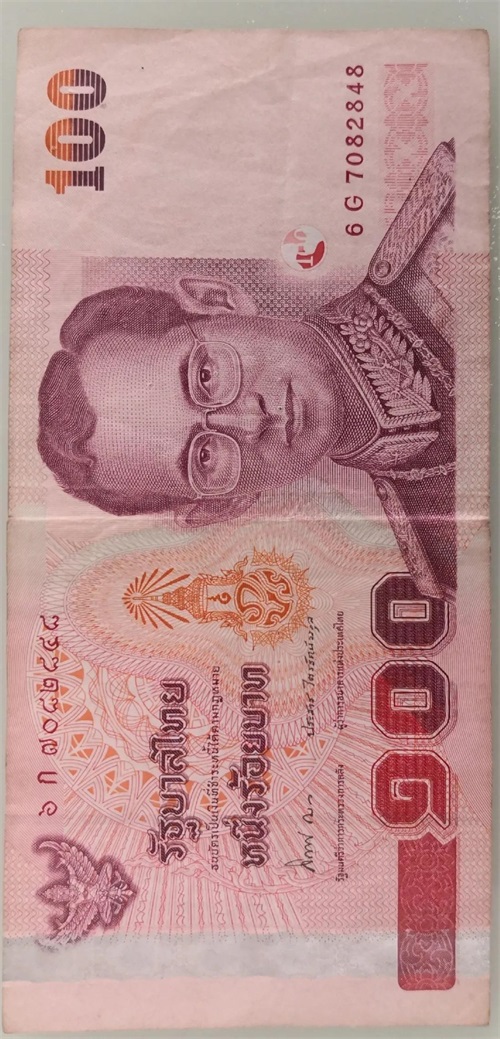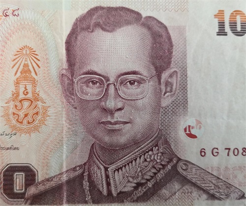 图片展示的是拉玛九世普密蓬国王版本的泰铢。普密蓬国王去世后,泰铢图案改为十世王哇集拉隆功头像。