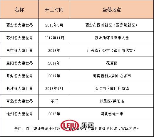 已开工恒大童世界项目汇总