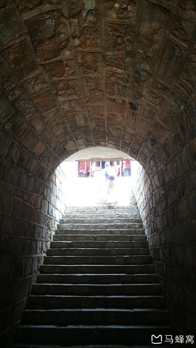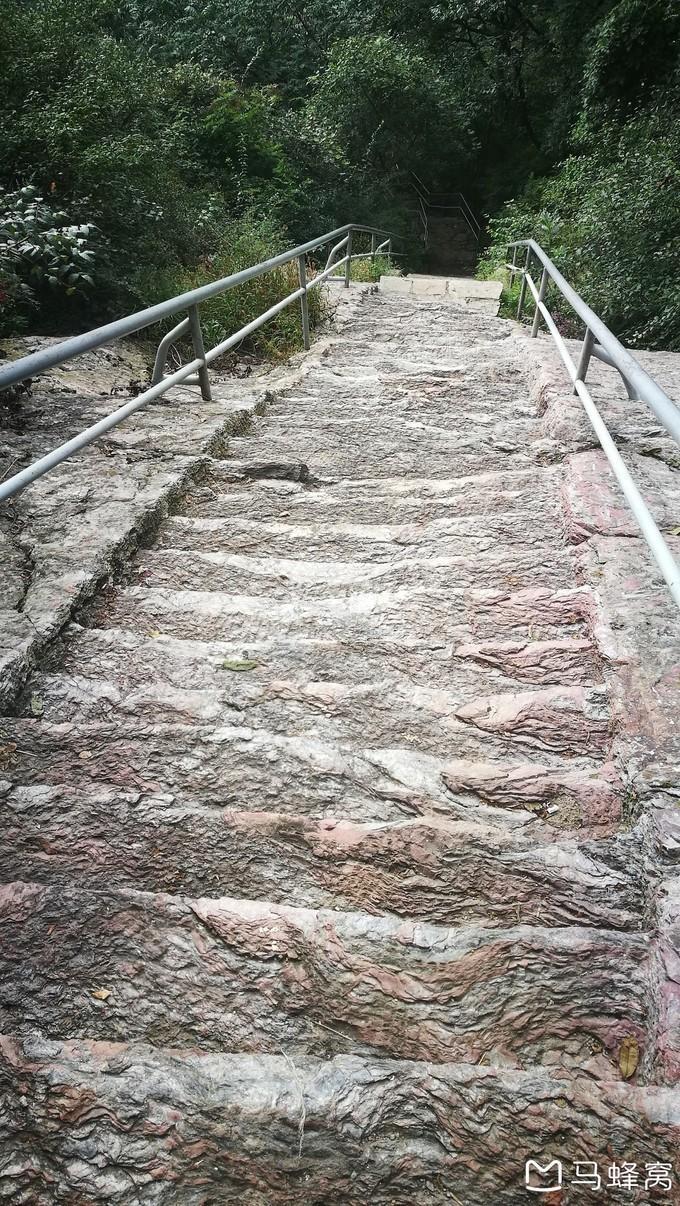 15:15,开始下山,正好与一对三四十岁的夫妇同行。走过一段平路,对我们的考验很快就来了,连续的、比较陡峭的台阶,膝盖、小腿肚感到明显酸胀。巍仍轻松在前,我坚持着居中紧随,明又落在后面,而那对夫妇已经看不见他们的影子了!