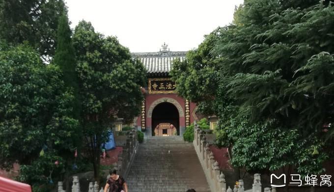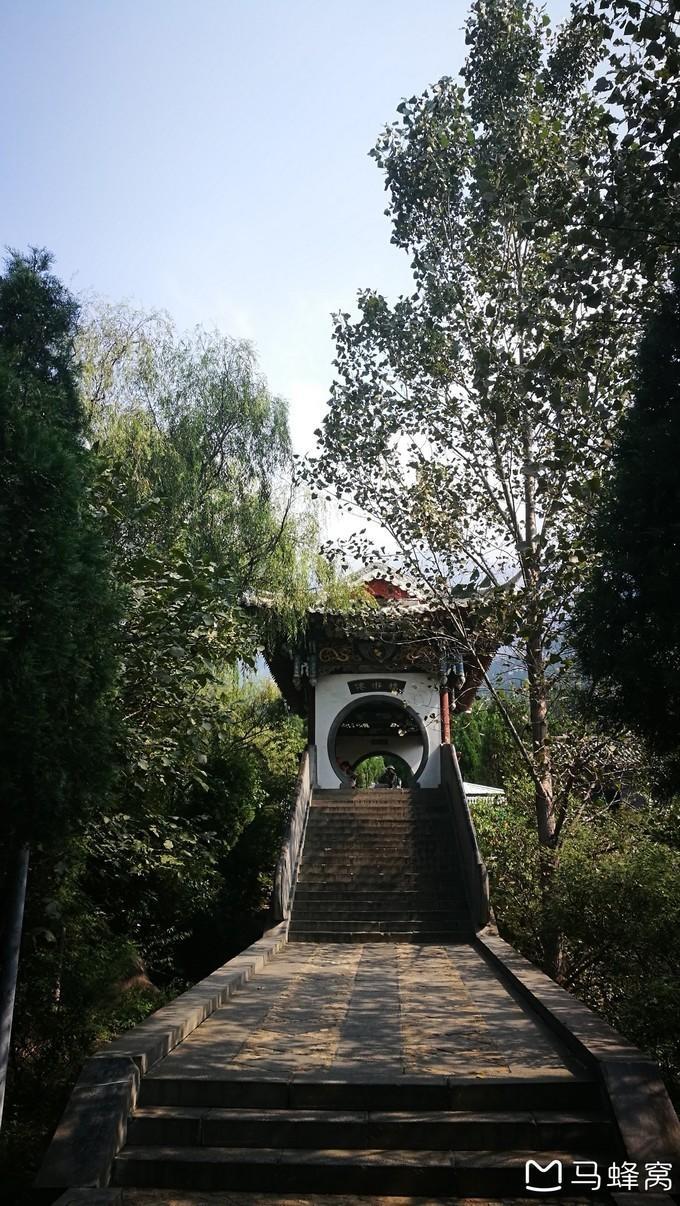 法王寺这条路,虽然路程短,但是基本上全是台阶,没有什么景点。手扶着铁栏杆,顺着台阶,蜿蜒下行,经过玉女峰、玉女桥,17:20,终于看到了法王寺,在山门前拍照留影。从法王寺到嵩阳书院停车场还有一段距离,我们和法王寺门前私人运营的车主谈好价钱,每人10元,另一个学生谈好15元帮他送到 登封 汽车站。