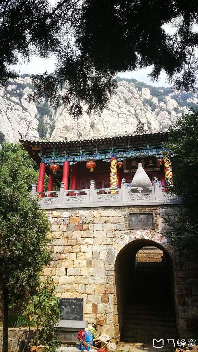 11:40,到达峻极宫,与明汇合。正殿和偏殿看上去都比较简陋,旁边上山的道路旁是“石船”。向前经过聚仙亭,道路平缓了许多,真是恰到好处,因为这时候体力消耗达到了峰值,坚持过这一段对后面来讲会适应很多。在树荫下,享受着山风阵阵吹来,沿着这段起伏坡道快步向前。