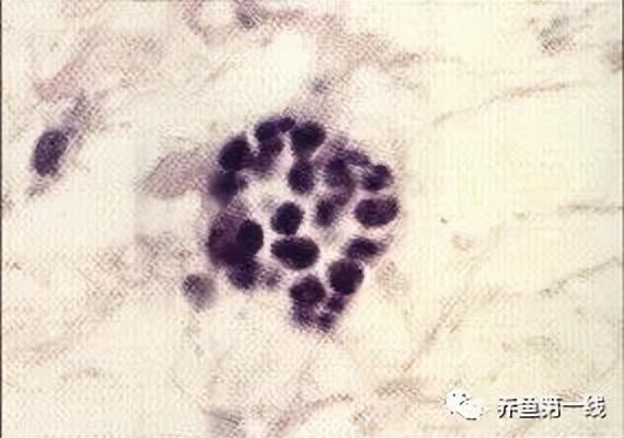 病原菌为无色分枝杆菌(Mycobacterium nonchromogenicum),是一种抗酸菌。本菌被石炭酸品红染色不呈红色。在组织内形成特征的结节状肉芽肿。在病原菌的培养方面,将病灶用4%苛性钠处理后,用3%小田培养培养约4周后,可长出灰白色菌落(照片3)。