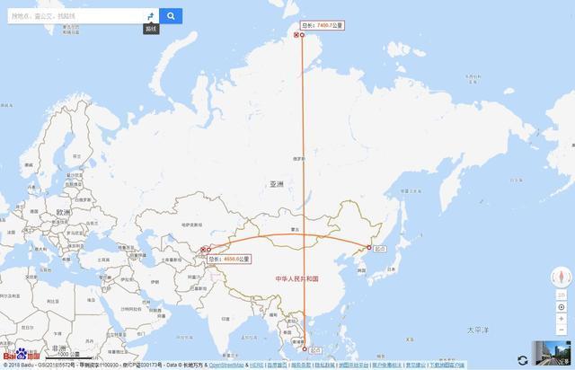 东西九千三百里(等于4650公里),南北一万四千八百一十五里(等于7407.5公里)。
