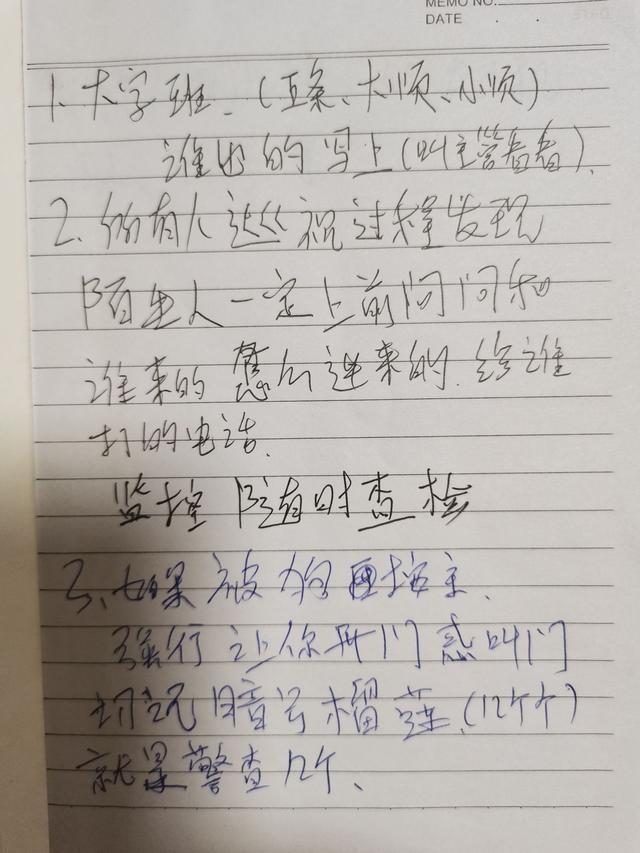 核心赌厅位于一间套房里面,而在赌厅门口右侧的衣帽柜里,办案人员发现了一个疑似记录保安培训内容的小本子,上面写道:所有人在巡视过程中,一旦发现陌生人要第一时间上前问清楚他是和谁来的、怎么进来的、给谁打的电话。