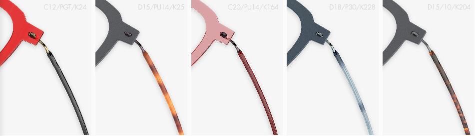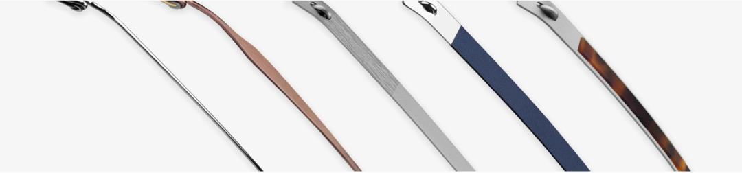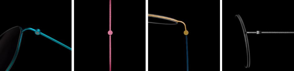 镜腿是无框眼镜重要的特征之一,包括三种截然不同的镜腿设计:优雅的钛丝、富于表现力的钛板到彩色纤维板材, 所有的镜腿均不使用螺钉固定,构成了一套完整的 “订制系统”。Spirit系列的镜腿款式、颜色和尺寸提供了众多选择。