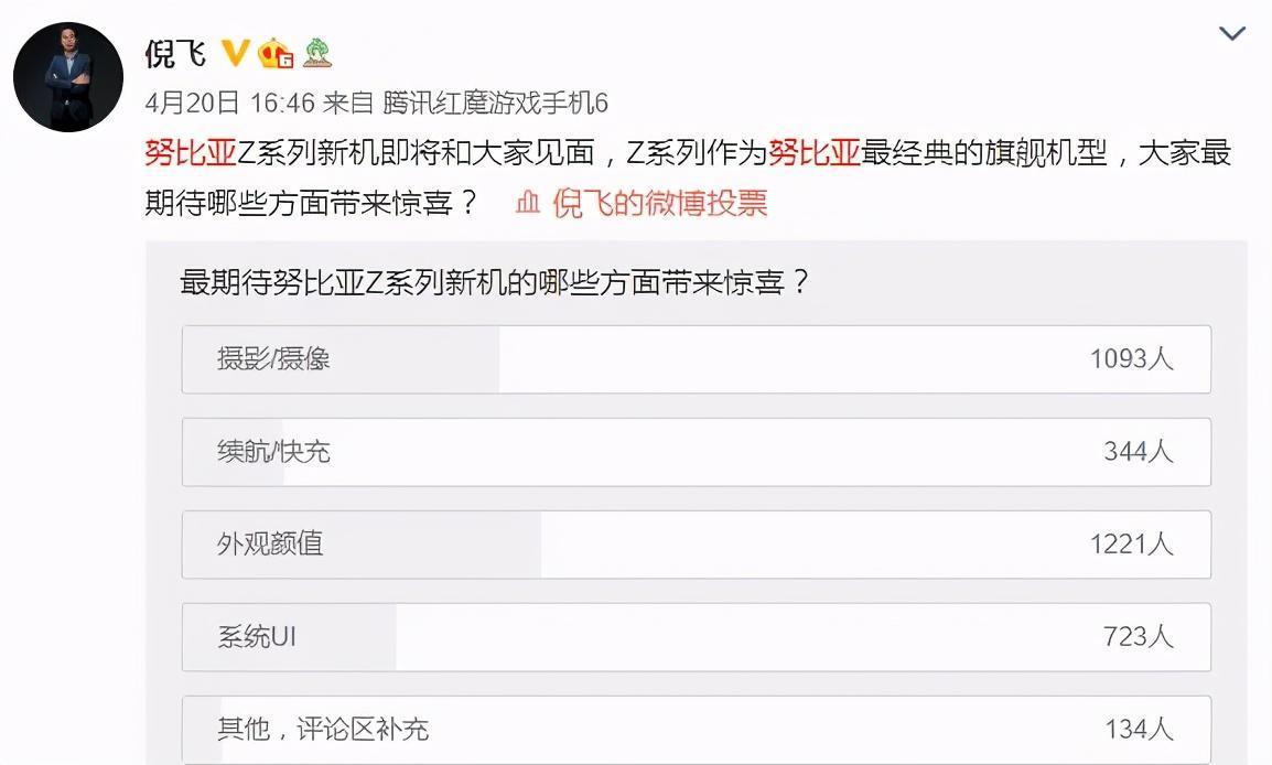 前几天,中兴高管倪飞也是在微博对努比亚Z系列新机进行了投票,询问大家期待新旗舰在哪些方面带来惊喜。从投票结果来看,大家依然是对努比亚Z系列的外观和拍照期待值最高。
