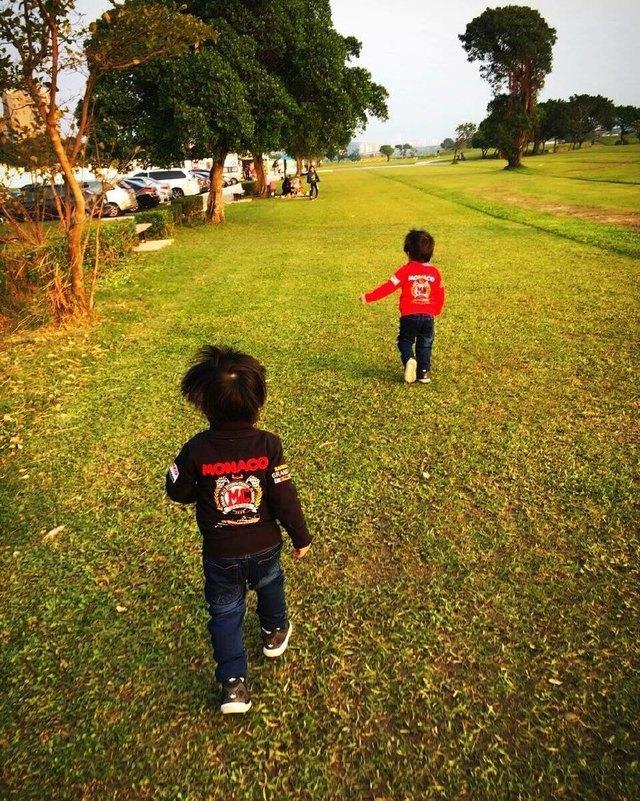林志颖的两个双胞胎儿子长高了不少,两个小家伙在草地上自由的奔跑,看这背影萌萌的,非常可爱。