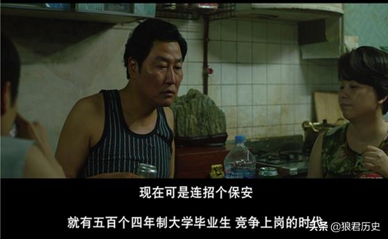 这个现象在电影中也有所表露,主角一家个个都有一技之长,而且是擅长,当时从父母、到男主、再到男主的妹妹,都是待业在家。当靠着欺骗男主一家在雇主一家找到工作之后,男主爸爸的一句话,揭露了韩国社会的伤疤。