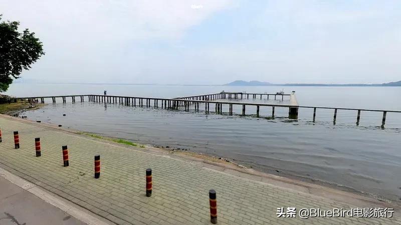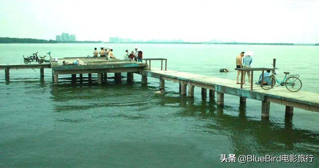 野鹅湖还有一个一晃而过的空镜头,其实是在武汉东湖边取的景,具体在武汉大学的凌波门游泳池旁边,是从武大月湖延伸出来的一段栈桥。