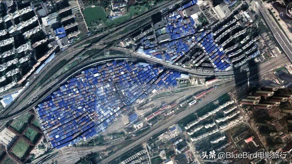 从卫星照片上看,华安里就是一片密集的蓝色屋顶,和周围宽松优雅的中产小区形成鲜明的对比。
