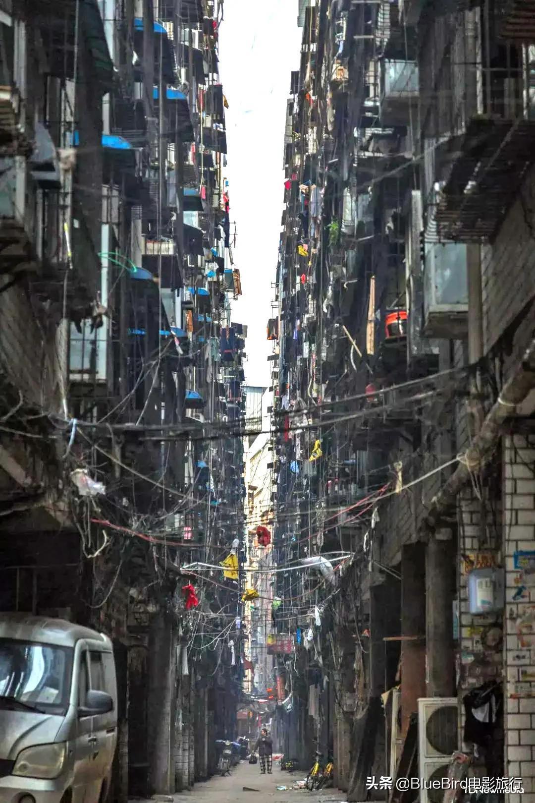 这片板楼密集的居民区,占地面积仅1.08平方公里,却交错着2000余栋握手楼。这种握手楼,其楼间距仅两三米,两楼窗外搭的晾衣架和电线纷纷在半空握手。因此,华安里是武汉人口最密集的社区,堪称武汉的九龙城寨。