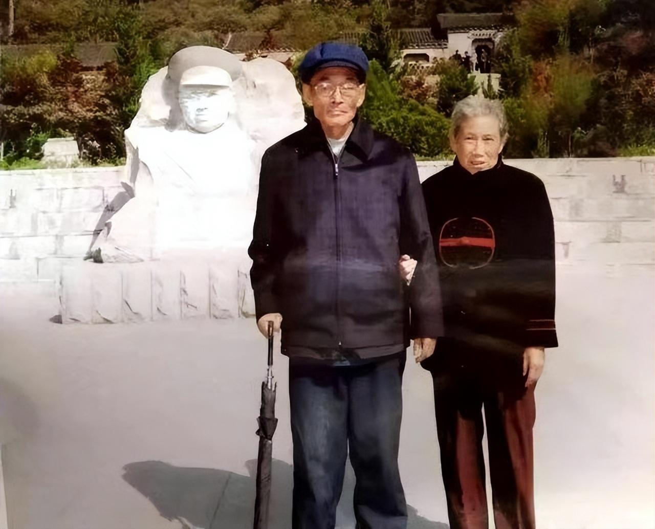 许光和老伴在许世友将军雕像前