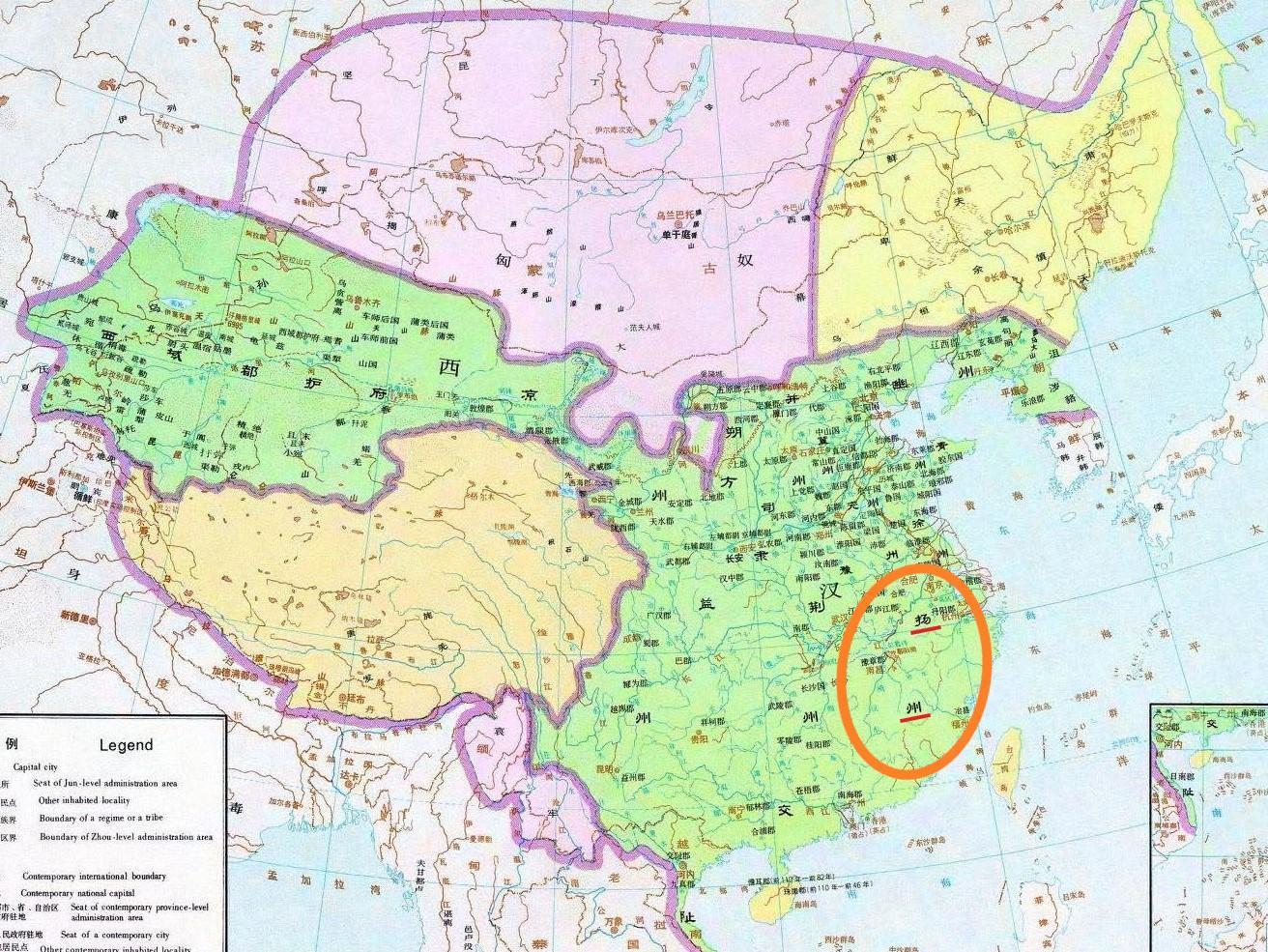 豫章郡在扬州刺史部六郡国中的相对位置