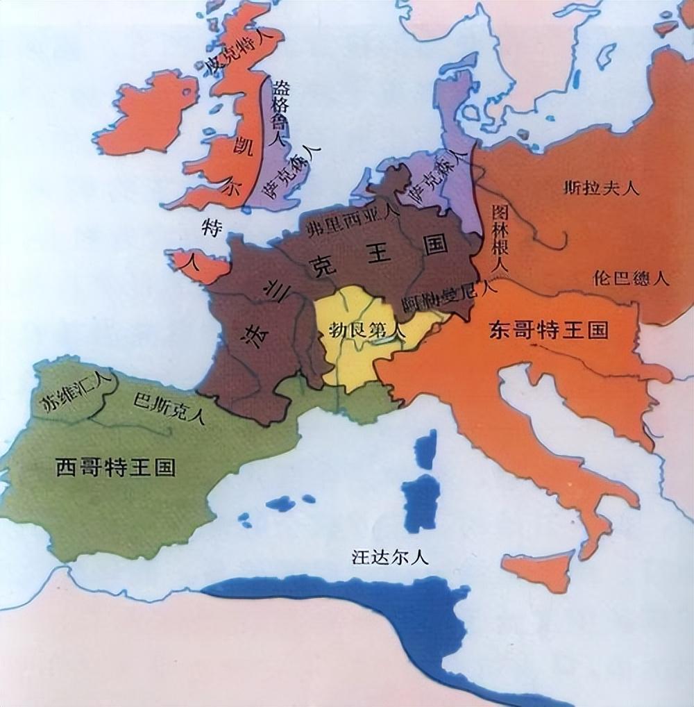 所以,这一次罗马教皇遇到困难没有求助于拜占庭帝国,而是转向了西边的法兰克。法兰克也是日耳曼人的一支,而且是最成功的一支,它占据了高卢地区,建立了墨洛温王朝。