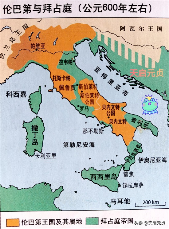 而意大利南部,仍然掌握在伦巴第的一个公国和拜占庭帝国手中。