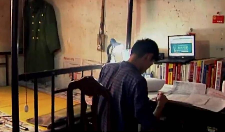 秦飞住在村里的一间破旧的办公房里,他住的房间只有八九平方米,没有天花板,有的只是用木板,塑料材料搭建成的简易顶棚,夏天漏雨冬天进风。