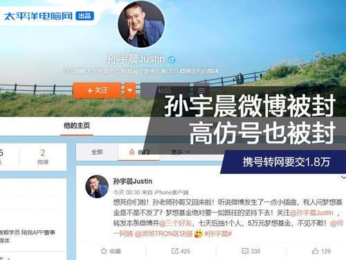 孙宇晨就此回应称,其正在联系微博官方询问原因。