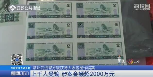 据江苏公共·新闻频道《新闻360》报道:近日,常州市武进警方经过4个多月的侦查,成功侦破一起一千多人上当、涉案金额超过2000万元的特大收藏品诈骗案。