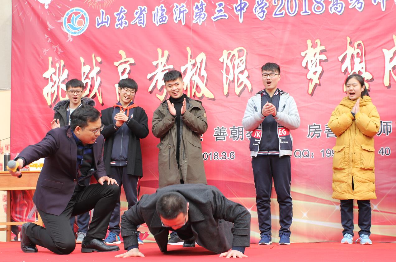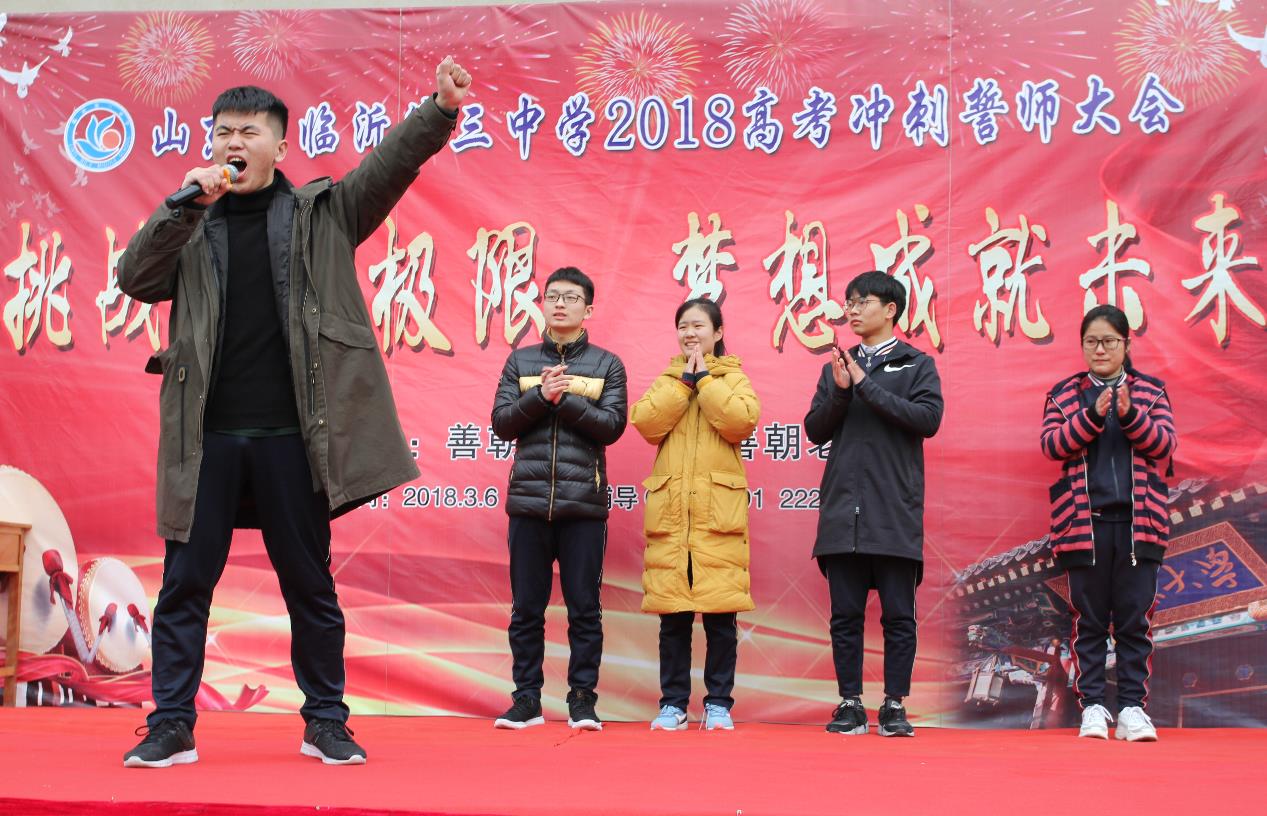 3月6日下午,临沂三中高三全体师生齐聚操场,共同聆听著名励志演说家房善朝老师举行“挑战高考极限,梦想成就未来”励志演讲会。
