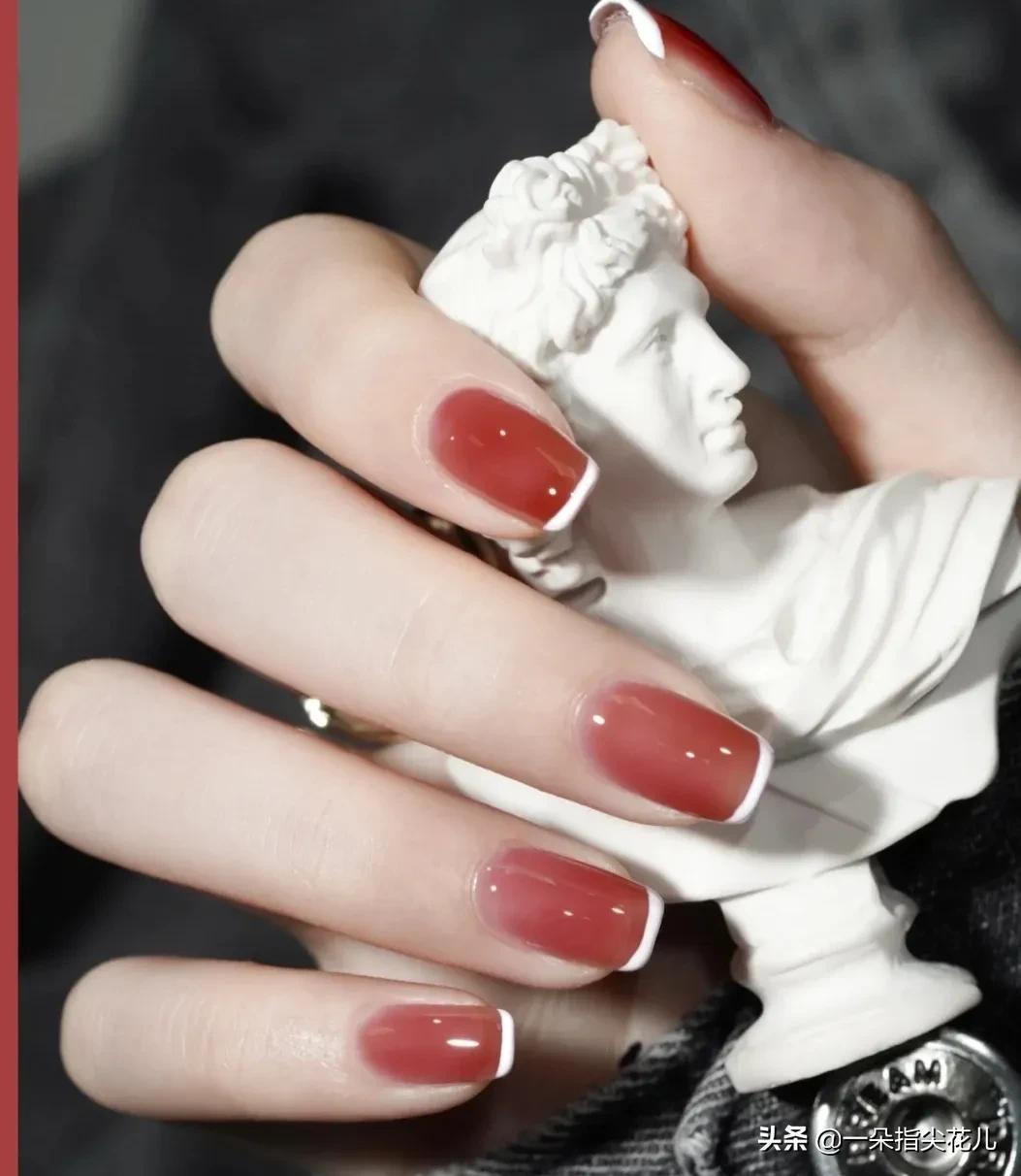 第二款:肉桂色果冻胶+法式小白边(短指甲款)干干净净!