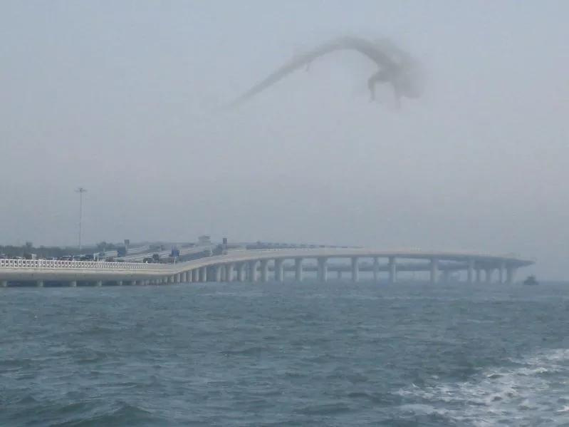 尤为壮观的一条盘踞在跨海大桥上空的真龙