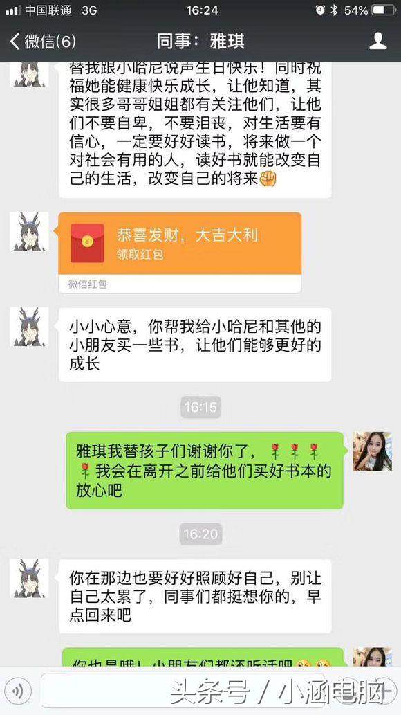 最近在常州发生这么一件事,张先生微信上遇到一名天使,微信名叫“阳光小天使”经常给一些贫困地区的孩子送去学习用品和保暖的衣服。12月初,他偶然相识一位天使,这位天使自称是幼儿园老师曾经去云南地区支教两个礼拜后,她说自己失恋了,要回以前支教的地方看看那些山里的孩子。