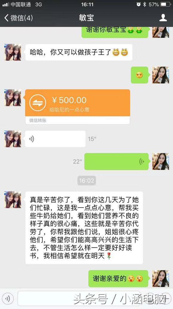 张先生说,他自己也是有孩子的人,看着山区的这些孩子生活的这样艰苦,如果捐助3000块钱能给孩子们解决些生活困难,也是件好事儿。于是通过微信转账给了这名所谓的幼儿园天使老师。